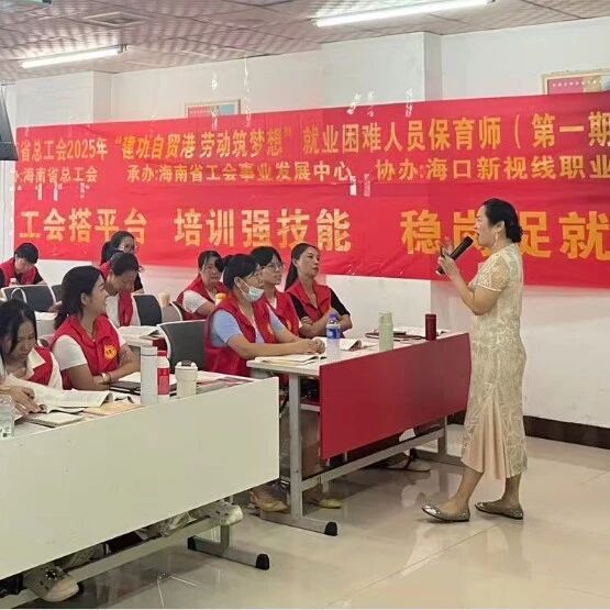 9月13日,由省总工会主办、省工会事业发展中心承办、海口新视线职业培训学校协办的2025年第一批“建功自贸港、劳动筑梦想”就业困难人员保育师培训班在海口顺利开班,来自全省各地60多名学员齐聚一堂,开启职业技能提升之旅。省工会事业发展中心和培训机构相关负责人出席开班仪式。此次培训班旨在通过专业技能培训,帮助就业困难群体掌握保育师职业技能,破解就业难题,同时为海南自贸港学前教育领域输送专业人才,实现民生保障与产业需求的有机衔接。这是省总工会聚焦“稳就业、...