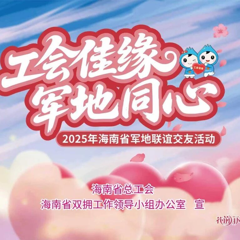 在碧海蓝天的海南岛,一场跨越职业与距离的浪漫邂逅即将上演。由海南省总工会、省双拥办联合主办的“工会佳缘·军地同心”海南省军地联谊交友活动,将于2025年9月20日在海口拉开帷幕。作为省总工会持续打造13年的单身职工联谊品牌,“工会佳缘”今年首次深度融合双拥工作,以“最靠谱的平台、最浪漫的场景”,为驻琼部队官兵与地方青年搭建起一座通往幸福的“连心桥”。致最可爱的人:你们是碧海蓝天的守护者,用迷彩青春筑起钢铁长城;你们是星夜兼程的执剑人,以忠诚担当捍卫祖...