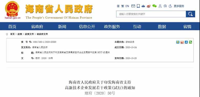 | 海南出台新政:奖励引进高新技术企业,最高达500万元