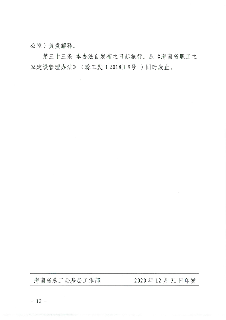 关于印发《海南省基层工会职工之家阵地建设工作规划(2021-2025)》的通知(琼工发〔2020〕52号)