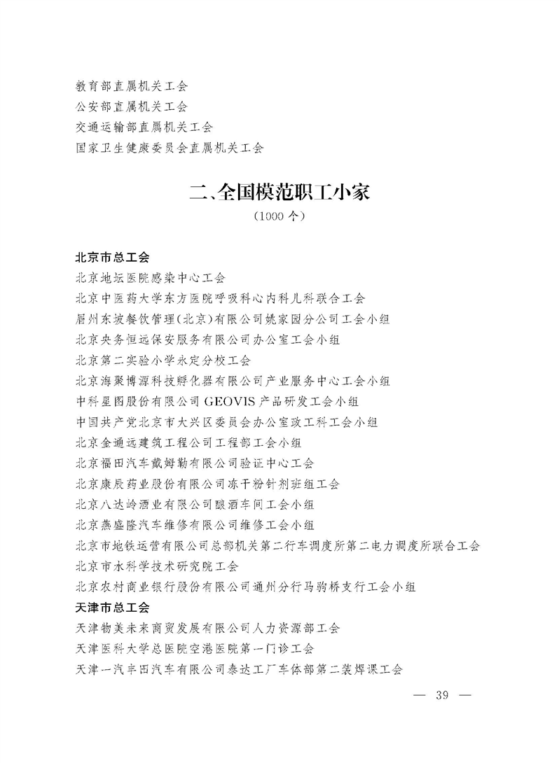 2020年全国模范职工小家全国优秀工会工作者的决定(总工发〔2020〕11号)