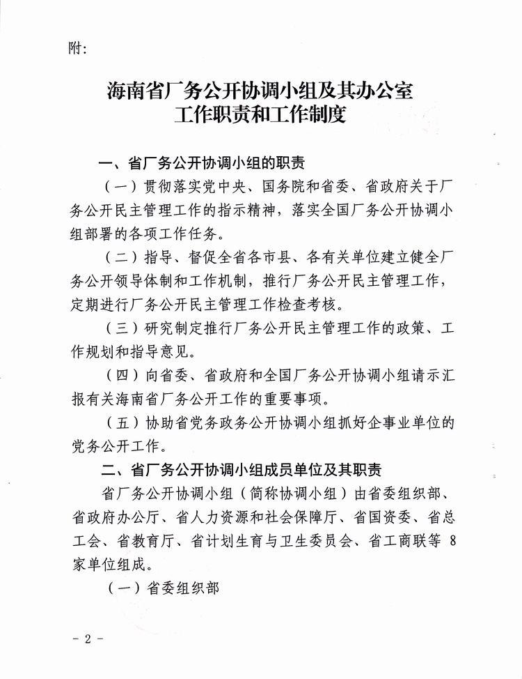 关于印发《海南省厂务公开协调小组及其办公室工作职责和工作制度》的通知,琼厂开组办发[2016]1号