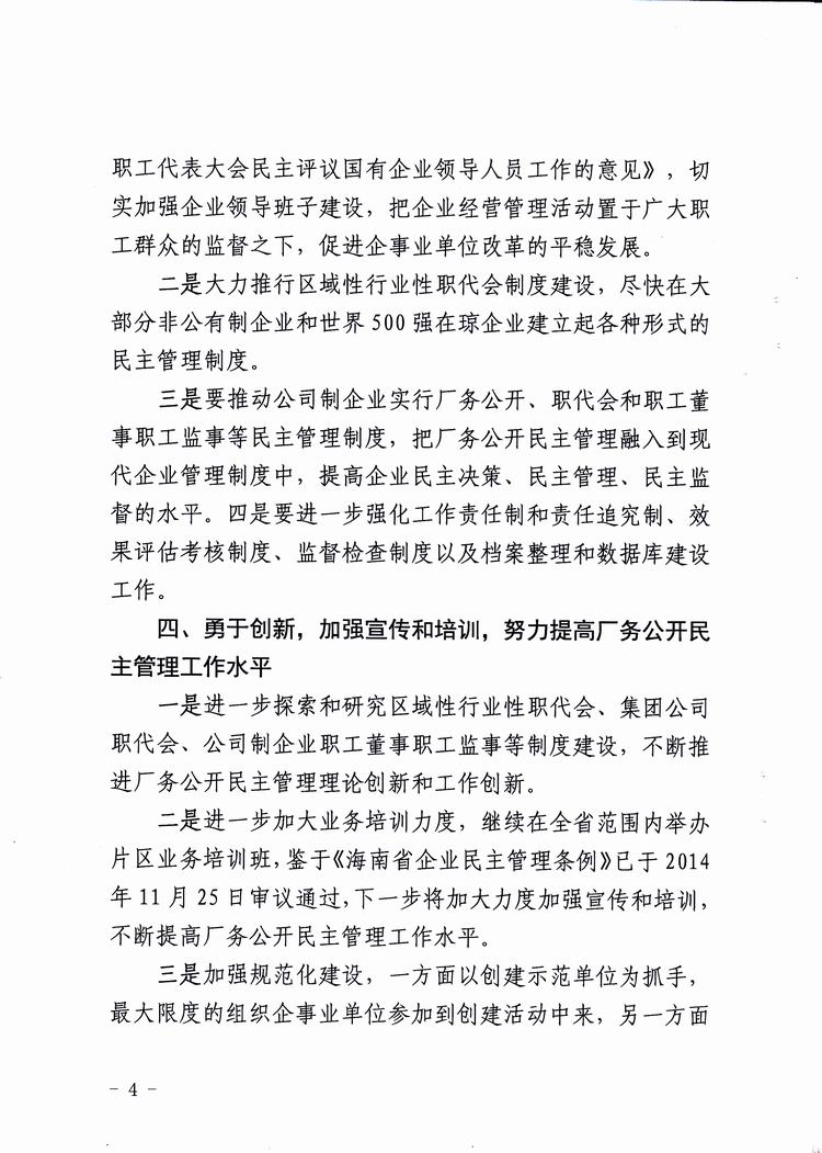 海南省2016年厂务公开民主管理工作意见,琼厂开组办发[2016]2号