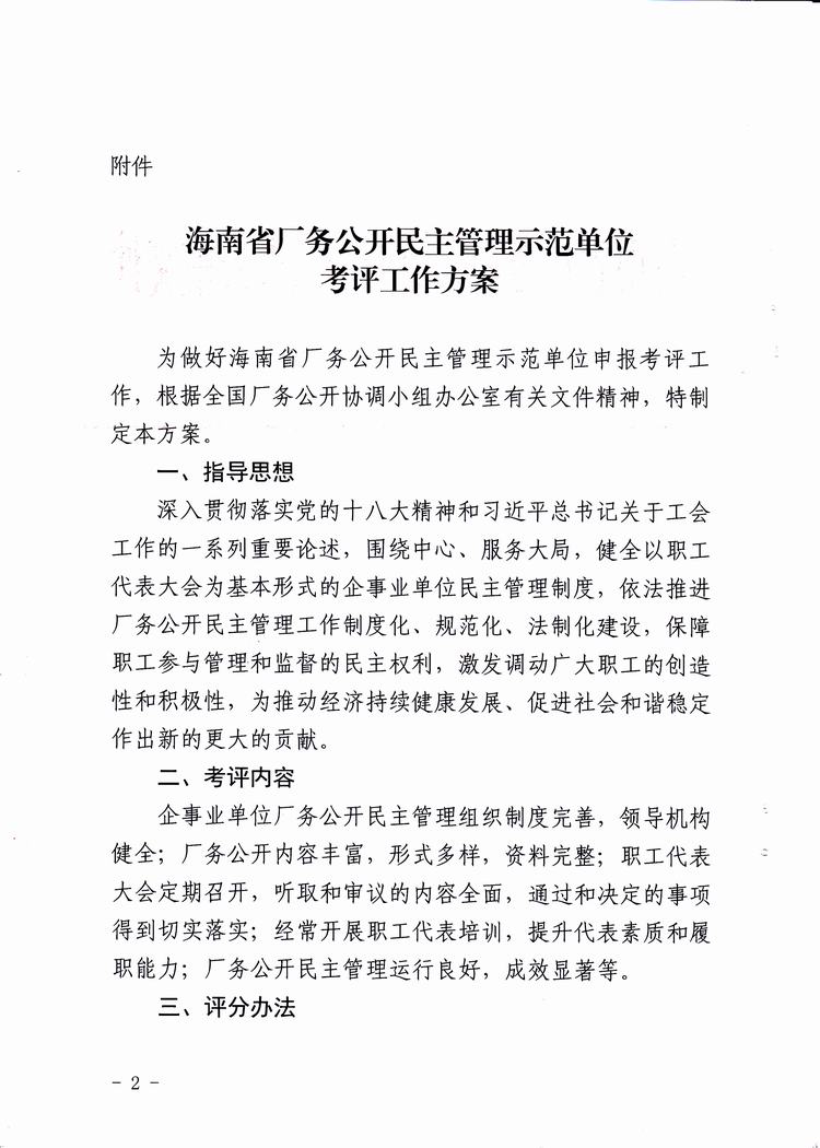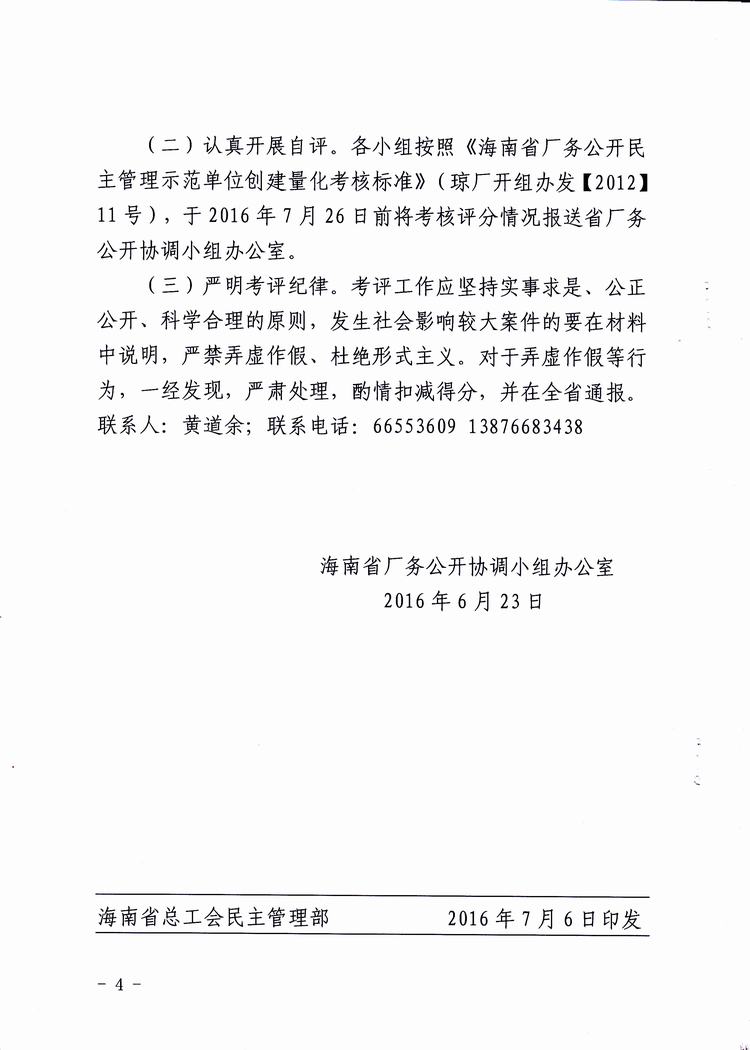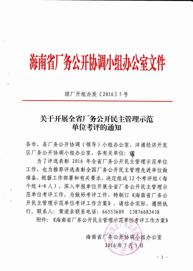 关于开展全省厂务公开民主管理示范单位考评的通知,琼厂开组办发[2016]5号