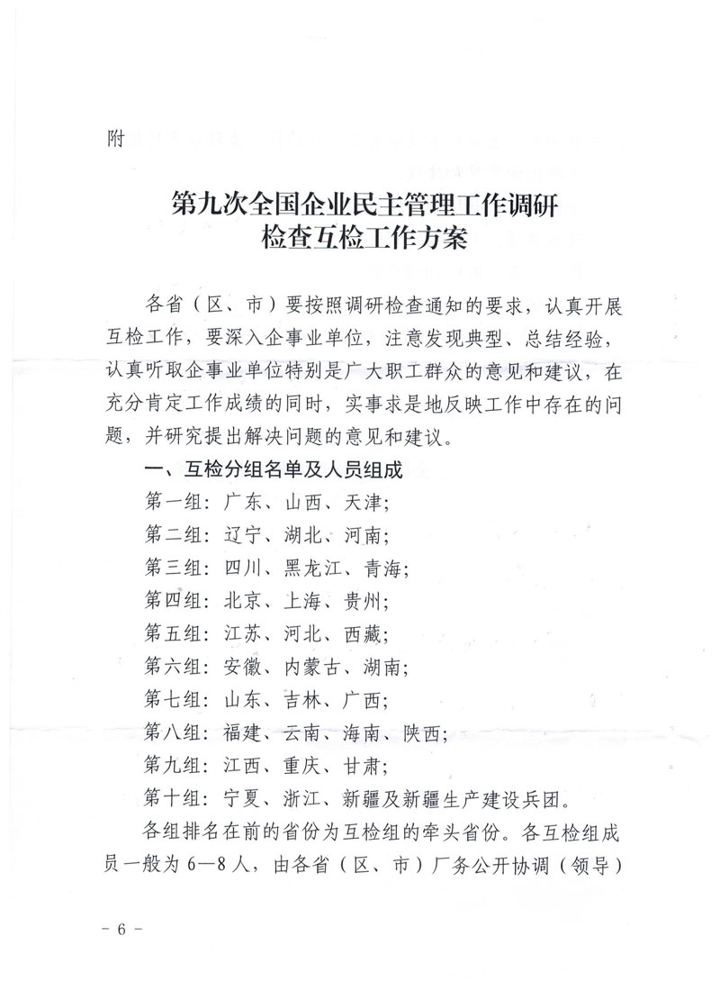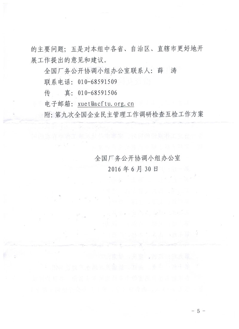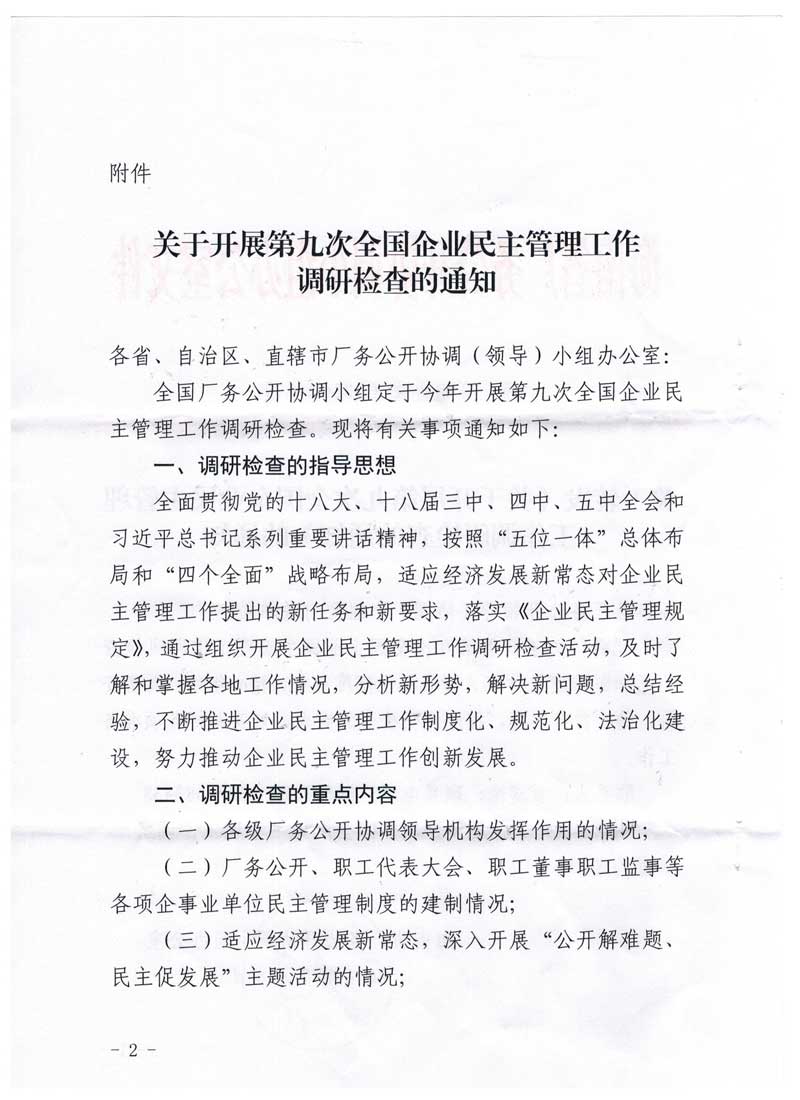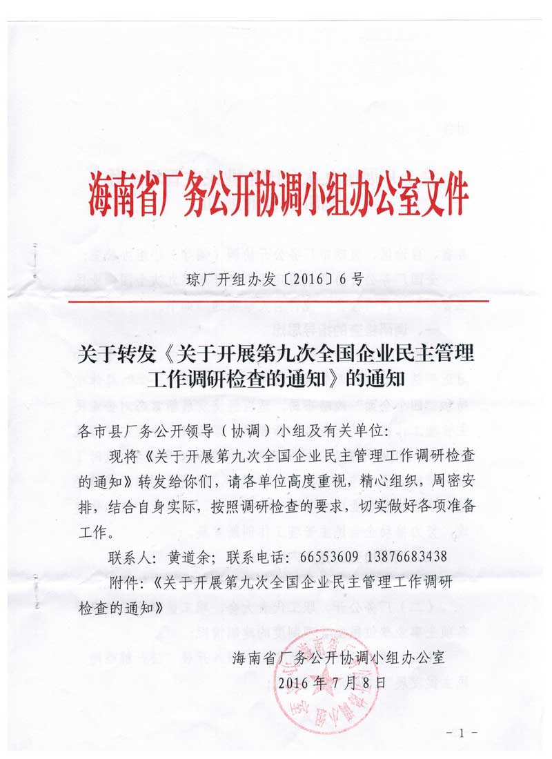 关于转发《关于开展第九次全国企业民主管理工作调研检查的通知》的通知(琼厂开组办发[2016]6号)