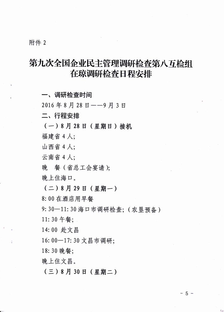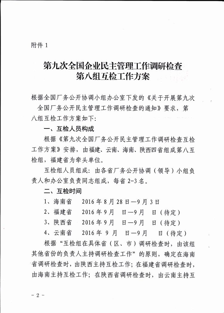 关于转发《第九次全国企业民主管理工作调研检查第八组互检工作方案》的通知(琼厂开组办发[2016]8号)