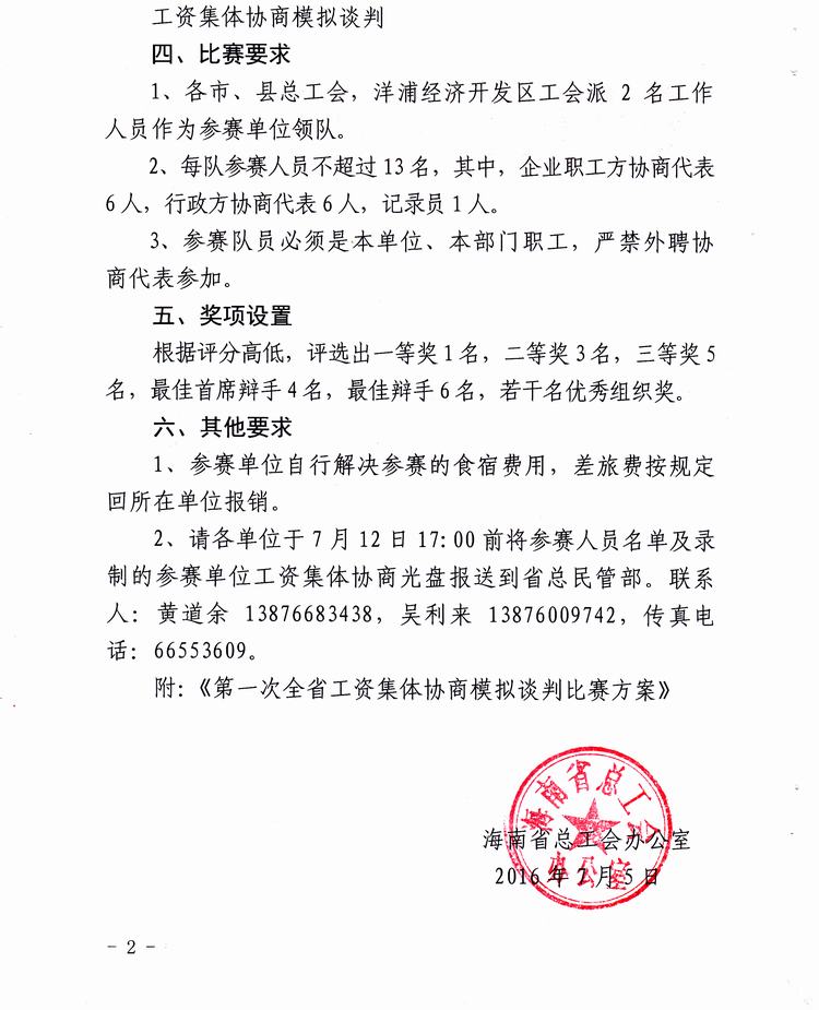 关于举办第一次全省工资集体协商模拟谈判比赛的通知(琼工办发[2016]35号)